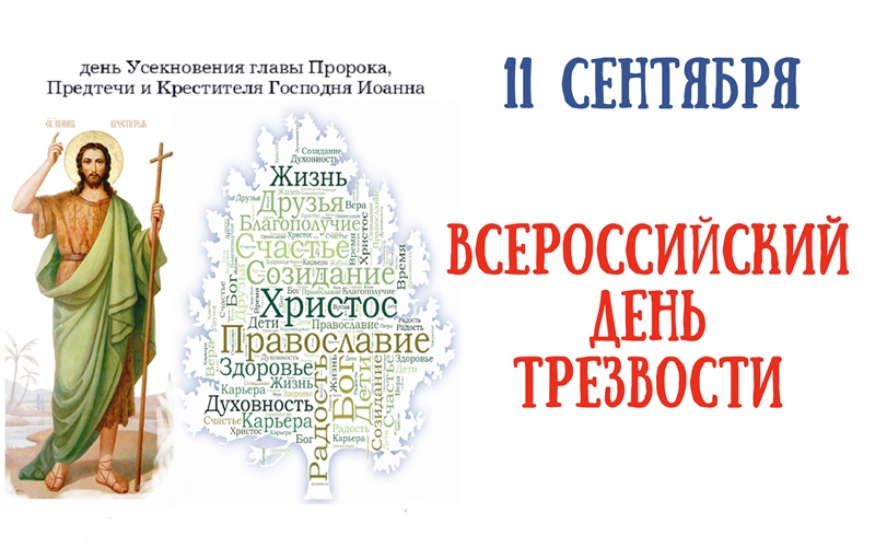 По благословению епископа Ейского и Тимашевского Германа во всех храмах и монастырях Ейской епархии 11 сентября после Божественной литургии будет оглашено обращение Патриарха Московского и всея Руси Кирилла по случаю Дня трезвости, прочитана проповедь по раскрытию важности сохранения трезвого образа жизни и совершено молебное пение о страждущих недугом винопития.