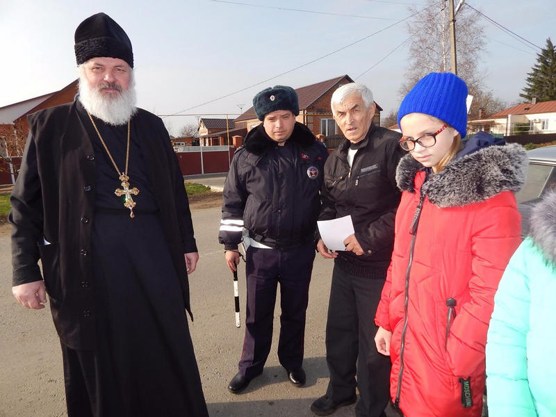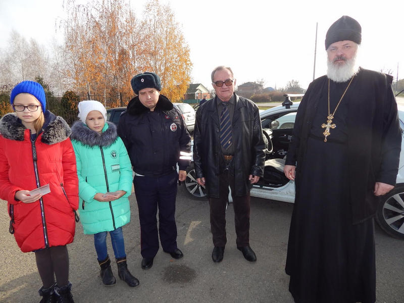 В конце беседы воспитанники Воскресной школы пообещали сотрудникам Госавтоинспекции Мордовии всегда соблюдать Правила дорожного движения и напоминать о них своим близким и друзьям. В этот же день Протоирей, настоятель Храма Покрова Пресвятой Богородицы Алексий Самойленко отслужил поминальную утреннюю панихиду в память по погибшим. После панихиды на одной из центральных улиц станицы, сотрудники Госавтоинспекции совместно с представителями духовенства, провели акцию, направленную на привлечение внимания водителей транспортных средств. С напутственными словами о безопасном поведении во время движения к водителям обращались слушатели Воскресной школы. Всем автолюбителям, были вручены иконки «Молитва водителя». Сотрудники Госавтоинспекции, которые чаще всего сталкиваются с человеческим горем на дорогах, вручая тематические памятки, призывали всех участников дорожного движения быть предельно внимательными и корректными по отношению к другим участникам, использовать детские удерживающие устройства и ремни безопасности, соблюдать скоростной режим.