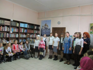 Дети вместе с ансамблем «Вифлеем» ( руководитель Демкина Т.А.) исполнили песни о маме, читали стихи о Богородице, а затем подарили любимым мамам и бабушкам поздравительные открытки, изготовленные своими руками на занятиях по прикладному творчеству.