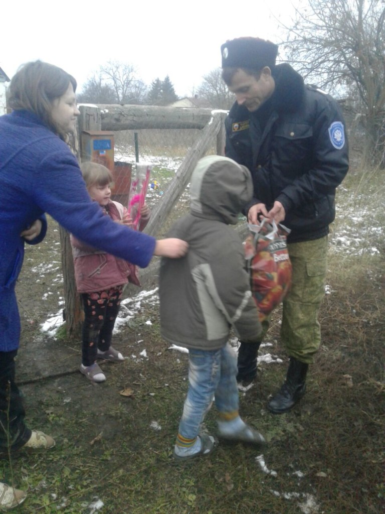 Настоятель храма Святой Троицы иерей Александр Виноградов вместе с казаками хуторского общества посетили семьи, проживающие в Рассветовском поселении, и вручили мамам и детям продуктовые наборы от прихода, поздравили с праздником, пригласили приходить в храм со своими проблемами и нуждами, пожелали мамам Божьей помощи в воспитании детей и преодолении трудностей.