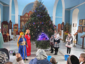Храм наполнился детскими звонкими голосами. Учащиеся приходской воскресной школы «Купель» и юные артисты ансамбля «Вифлеем» очень волновались перед представлением, ведь им предстояло выступление перед настоятелем храма, родителями и прихожанами. К ребятам и взрослым со словами поздравления с праздником обратился настоятель храма протоиерей Алексий Самойленко и после благословения батюшки, ребята с воодушевлением показали сценки на тему Рождества Христова, читали стихи и исполнили Рождественский тропарь. Зрители с радостью встречали каждое выступление детей. В завершении праздника все дети получили сладкие подарки от прихода и горячо благодарили за это своего батюшку и всех организаторов праздника.