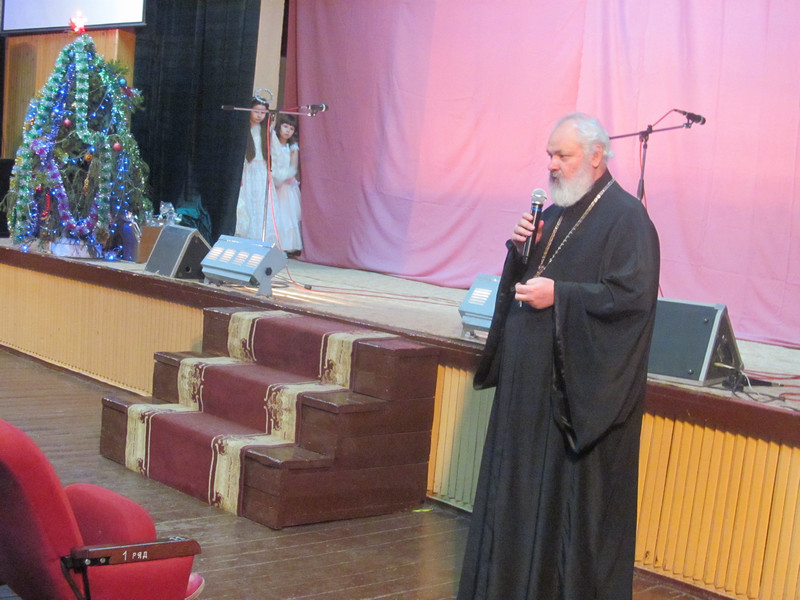Протоиерей Алексий, по завершении литургии, зачитал Рождественские послания Святейшего Патриарха Московского и всея Руси Кирилла и епископа Ейского и Тимашевского Германа.