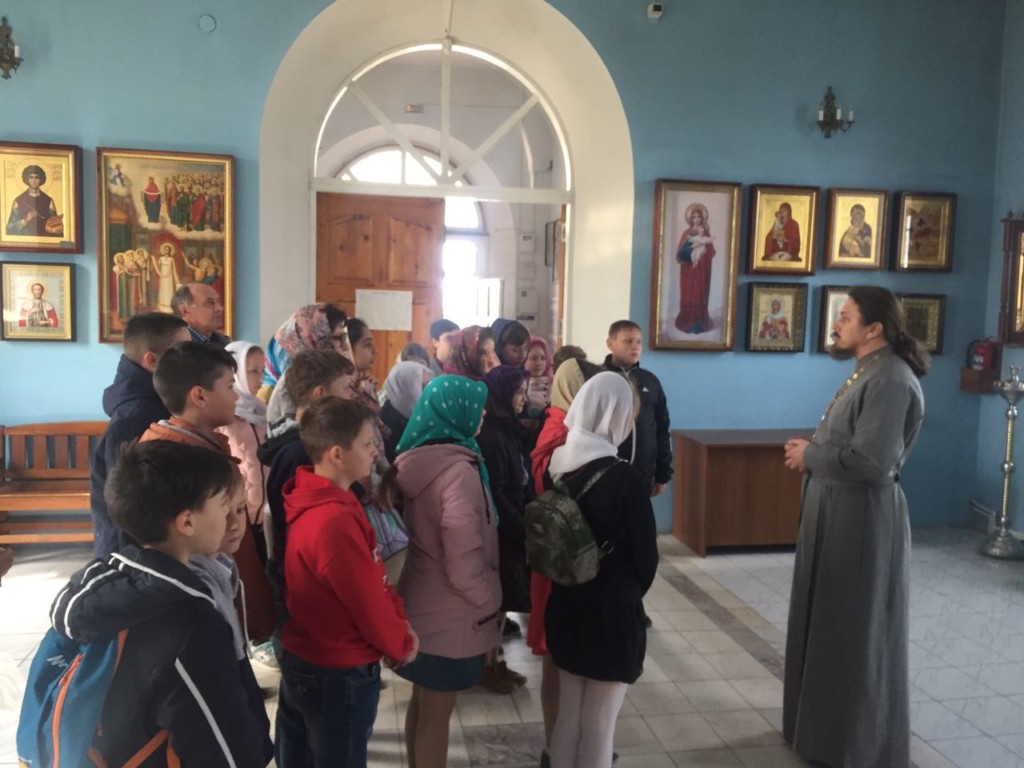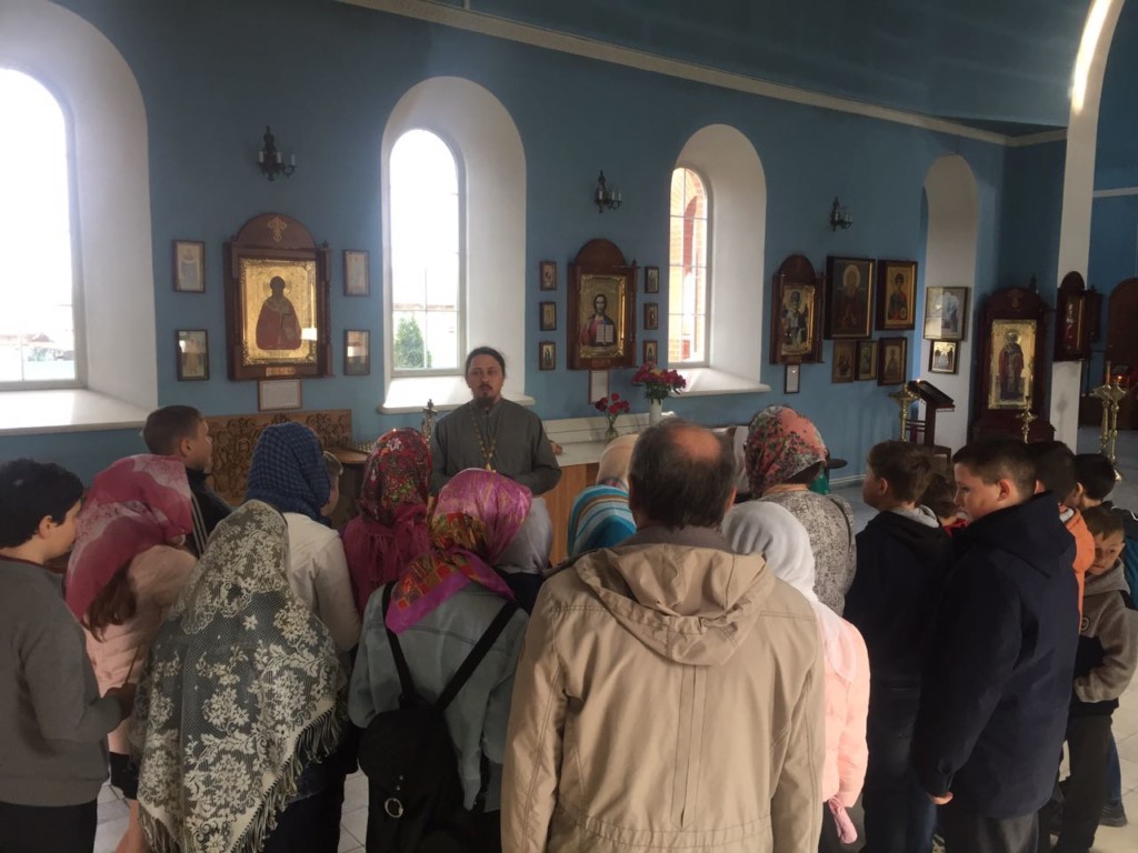 Об истории храма, его святынях рассказал учащимся штатный священник иерей Дионисий Севрук.