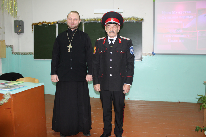 24 декабря настоятель Свято-Троицкого храма иерей Александр Виноградов и наставник казачьей молодежи, начальник штаба Староминского казачьего штаба Панин В.П. посетили СОШ №4 и выступили перед учащимися старших классов на уроке мужества.