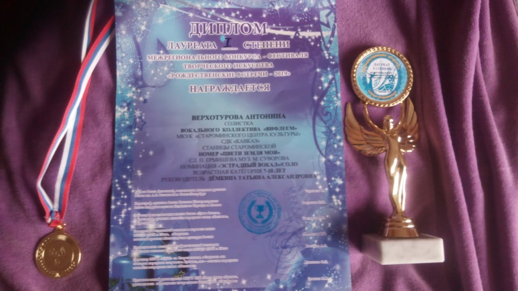 Среди солистов-вокалистов уверенную победу одержали Антонина и Даниил Верхотуровы. Брат и сестра занимаются в вокальном коллективе «Вифлеем» под руководством Демкиной Т.А. при СДК «Кавказ» и посещают воскресную школу Свято-Покровского храма. Юные вокалисты активно принимают участие во всех детских приходских праздниках.
