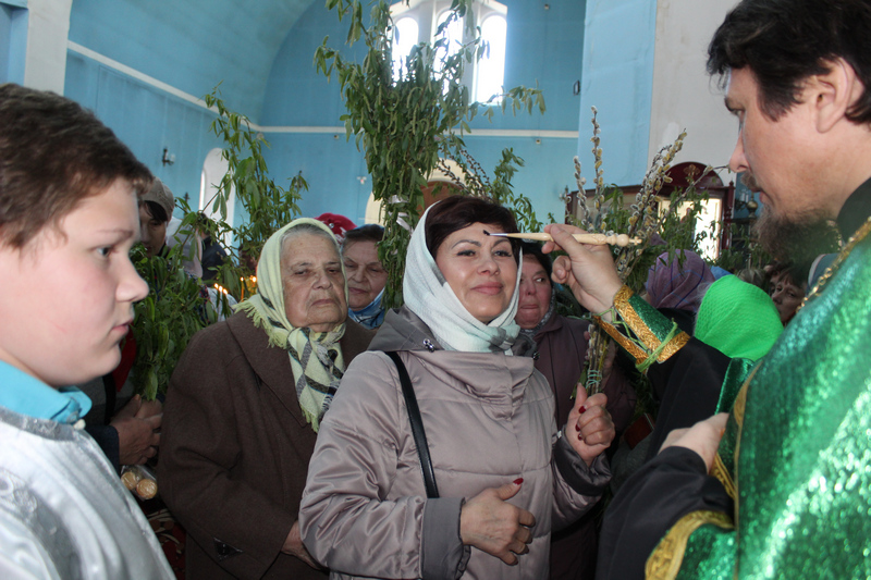 После всеношного бдения, на котором вспоминалось чудо воскрешения праведного Лазаря, настоятель храма протоиерей Алексий Самойленко освятил ветки вербы.