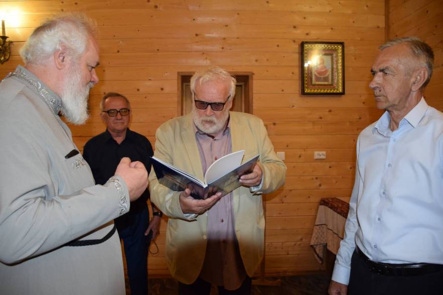 Экскурсия началась со встречи с настоятелем храма Покрова Пресвятой Богородицы протоиереем Алексием Самойленко, который поведал гостю историю этого храма от его истоков и до наших дней. Посетили и нижний Сретенский предел храма. Отец Алексий подарил Борису Георгиевичу книгу «Ейская епархия. Русская Православная церковь». В теплой дружеской атмосфере Борис Георгиевич поделился воспоминаниями, связанными с семьей, рассказал о своих ярких ролях.