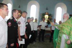 По традиции священник окропил казаков святой водой и сказал назидательное слово о важности принимаемой ими присяги и необходимости вести свою жизнь по христианским законам, посещении храма и причащении Святых Христовых Таинств.