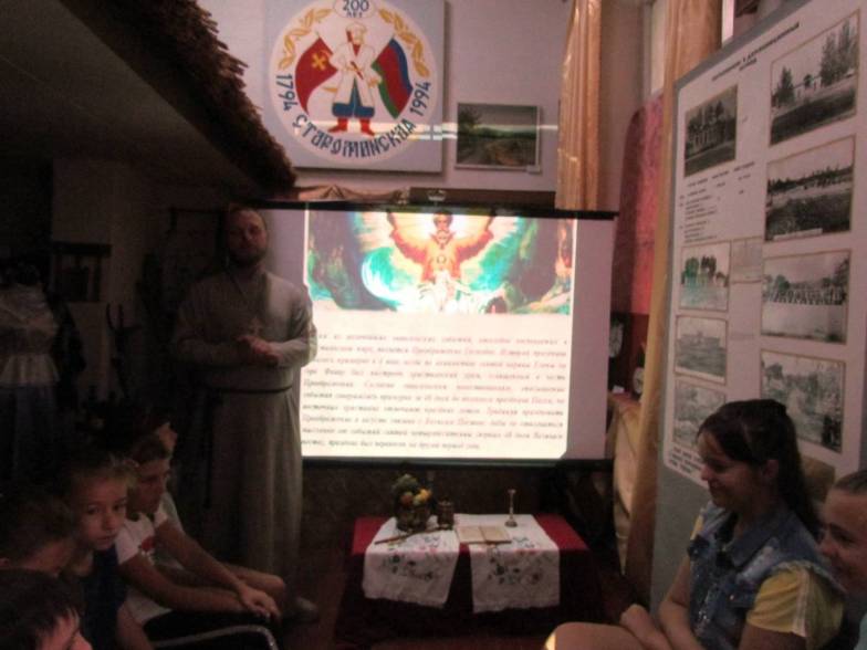 16 августа 2019года в Староминском музее состоялись мероприятия, посвященные двунадесятому празднику «Преображение Господне». Встреча настоятеля Свято–Троицкого храма иерея Александра Виноградова и ребят дневной тематической площадки СОШ №1 и воспитанников ДОУ №28 была познавательной, интересной.