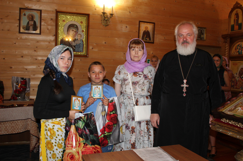 Затем в Сретенском пределе протоиерей Алексий, матушка Наталия и помощники по социальной работе вручили десяти детям из многодетных и малоимущих семей наборы школьных канцтоваров, иконки Ангела хранителя и еще раз сердечно поздравили ребят с началом учебного года.