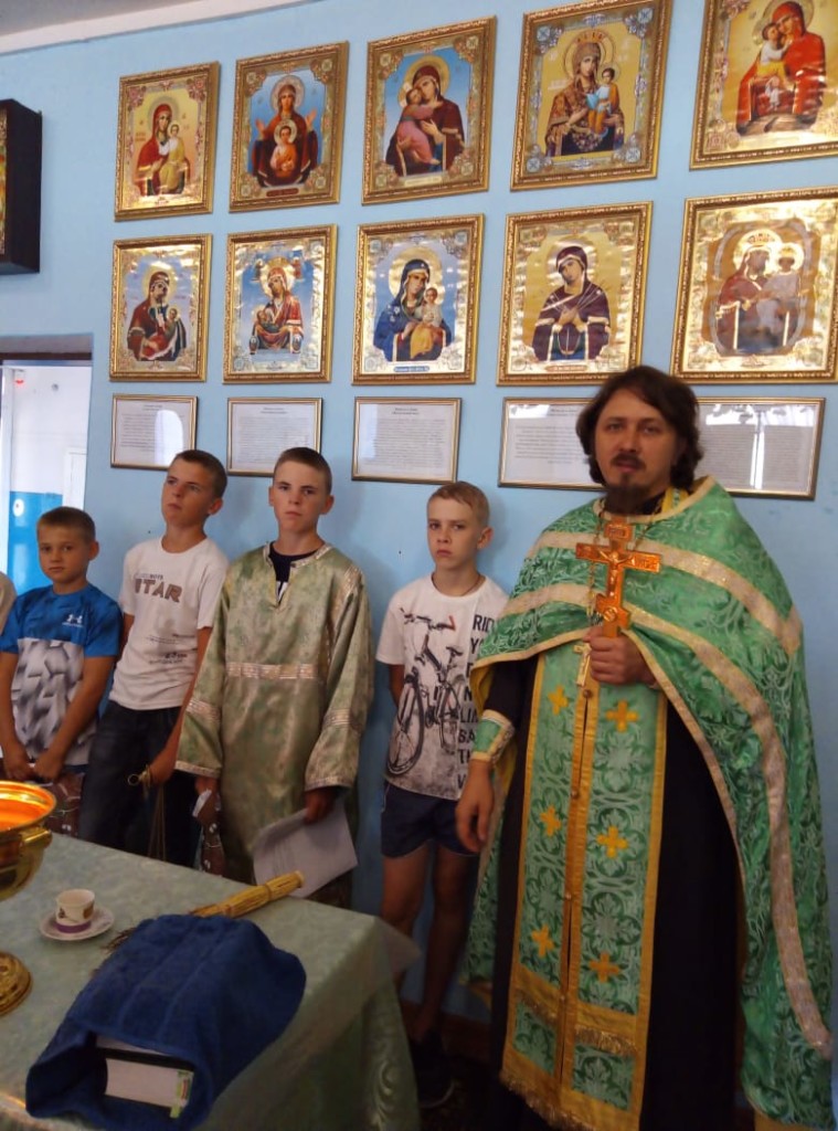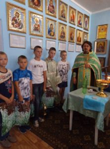 1 сентября в молельной комнате общины строящегося в хуторе Восточный Сосык храма святого князя Александра Невского настоятель иерей Севрук поздравил детей из малоимущих и многодетных семей с новым учебным годом. Батюшка пожелал ребятам успешно осваивать знания, с уважением относиться к учителям и родителям, быть добрыми и трудолюбивыми.