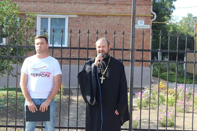 К собравшимся обратился настоятель храма святителя Луки исповедника Крымского иерей Евгений Калий: « Сегодня, вспоминая жертвы Беслана, мы едины в своем намерении всеми силами противостоять терроризму, не допустить разрастания этого преступного безумия!»