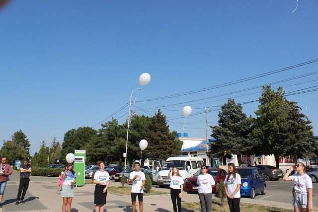 Участники акции почтили память жертв теракта минутой молчания и запуском белых шаров в небо.