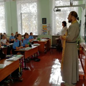 После молебна настоятель провел час духовности в 4-ом классе «О смысле учебы». Юные казачата внимательно слушали батюшку и задавали вопросы, на которые получили исчерпывающие ответы.