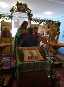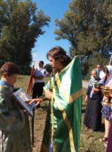 12 сентября в хуторе Восточный Сосык в молельной комнате прихода благоверного князя Александра Невского прошли праздничная Божественная литургия , которую отслужил настоятель иерей Дионисий Севрук.