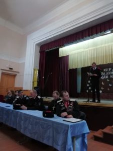Общешкольное собрание состоялось в Рассветовском Доме культуры, котором приняли также участие заместитель главы МО Староминский район, председатель Союза казачьей молодежи района Евтенко А.П., атаман Рассветовского ХКО Кунда И.Н., директор школы Косивченко Е.А, казаки-наставники.