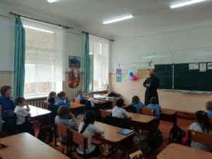 28 октября настоятель храма Святой Троицы иерей Александр Виноградов посетил казачью школу в п. Рассвет. Первая встреча состоялась с первоклассниками недавно принятыми в казачата. Настоятель подарил классу икону Николая Чудотворца, рассказал казачатам о заповедях Божиих и казачьих, о том с чего начинается духовная жизнь, а затем ответил на многочисленные вопросы ребят.
