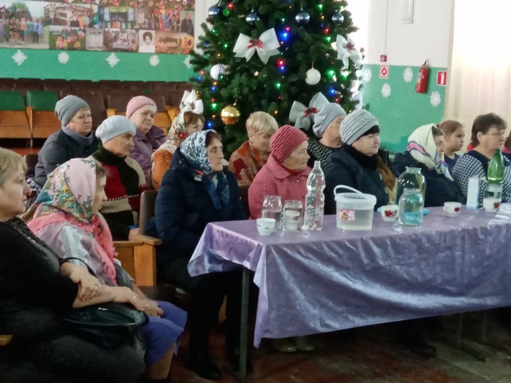 Затем клирик освятил воду и окропил святой водой участников и организаторов встречи. Пожилые люди сердечно благодарили батюшку за встречу, ответы на вопросы, так как многие из них не всегда могут приехать в районный центр в храм по состоянию здоровья.