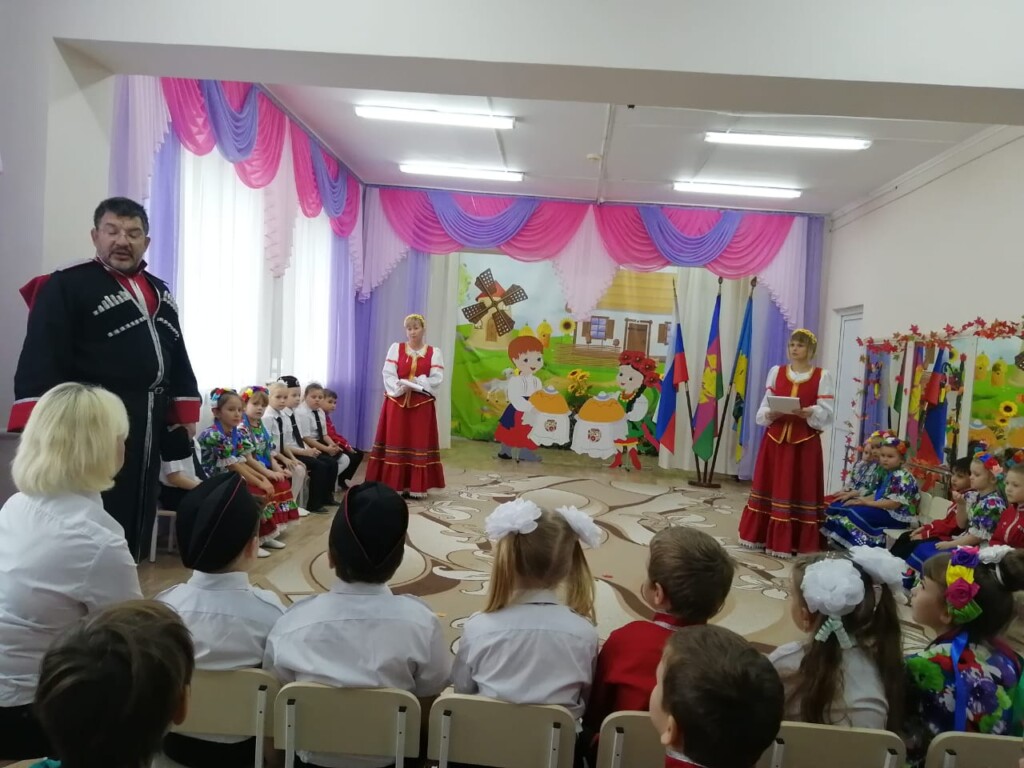 В МДОУ №7 ст.Канеловской состоялось праздничное мероприятие, посвященное приёму в казачата. Это дошкольное учреждение имеет статус «казачий детский сад» с 2019 года.