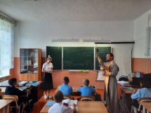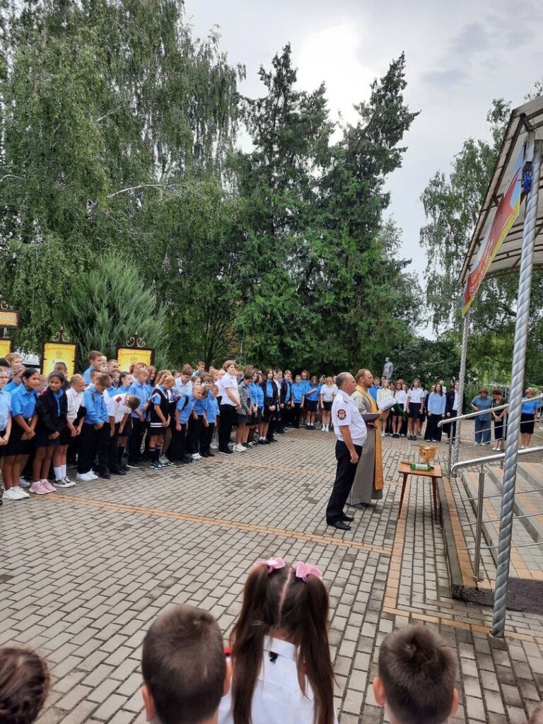 В МБОУ СОШ №5 им. Майстренко п. Рассвет Староминского района, имеющей региональный статус «Казачья», 4 сентября состоялся общешкольный молебен на всякое благое дело в начале нового учебного года. Молебен отслужил духовник казачьей школы иерей Александр Виноградов – настоятель Свято-Троицкого храма. Вместе с казачатами молился и атаман Рассветовского хуторского общества Иван Кунда. После завершения молебна иерей Александр обошел все классы и окропил святой водой помещения. Батюшка пожелал ребятам помощи Божией в учении и благословил на начало нового учебного года.