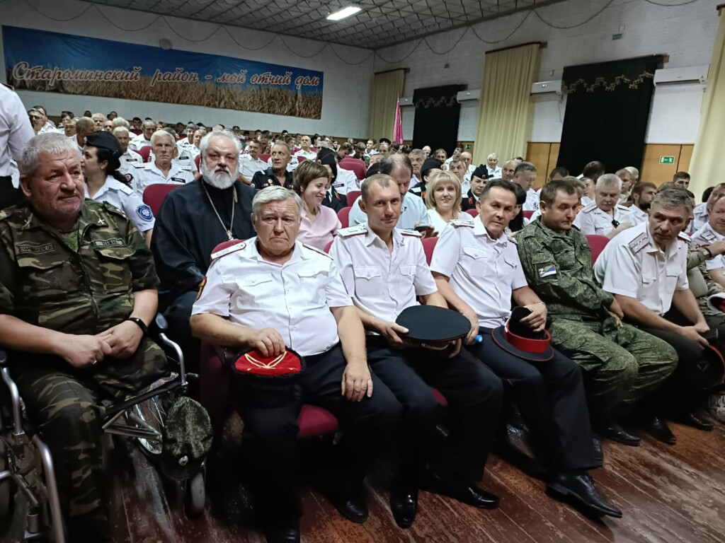Сбор начался молитвой и исполнением гимнов России, Кубани и Староминского района.