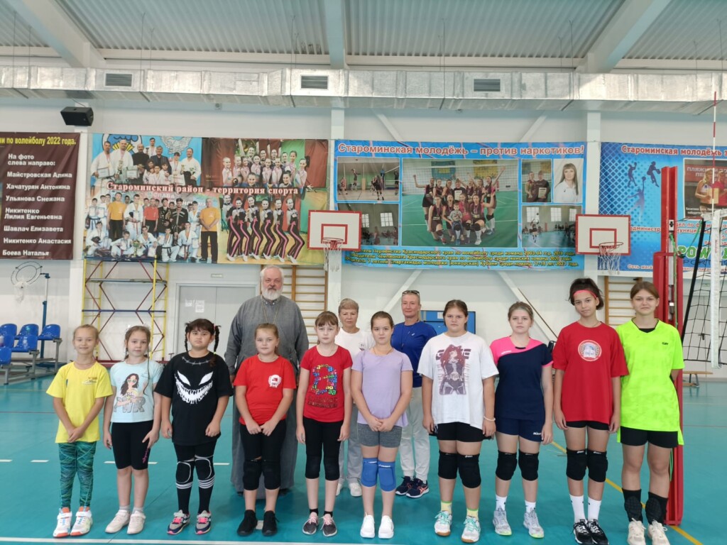 Затем благочинный пообщался с участницами волейбольной секции, благословил их на начало учебного года и пожелал им побед на соревнованиях всех уровней с помощью Божьей.
