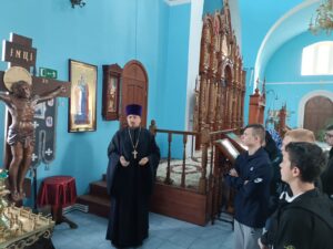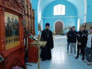 В этот день молодых людей встретил штатный священник храма иерей Дионисий Севрук. Священник поздравил студентов с днём Архистратига Михаила и всех Небесных Сил бесплотных, рассказал, что небесный воевода во все века почитался как главный покровитель Русского воинства.