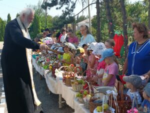В день празднования Преображения Господня по давно сложившейся традиции священнослужители Староминского благочиния после Божественной литургии разъехались по детским дошкольным учреждениям района, чтобы освятить плоды.