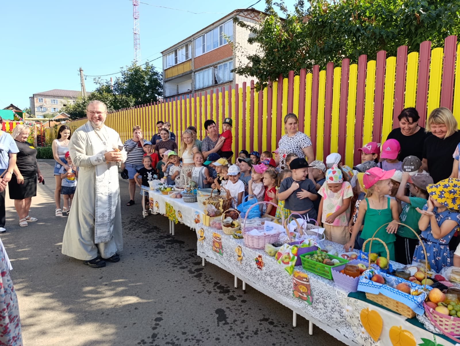 В четырнадцати детских садах ребята с нетерпением ждали батюшек. В каждом детском садике прошли утренники, посвященные празднику, на которых ребята узнали о народных традициях празднования Яблочного Спаса.