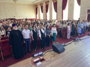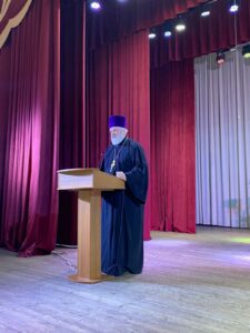 Протоиерей Алексий поблагодарил педагогическую общественность за труды, понесенные в прошедшем учебного году, и поздравил с новым учебным годом, пожелал успехов в обучении и воспитании в каждом ребёнке целостной личности с развитым кругозором, приобщенная к духовным, традиционным и культурным ценностям.