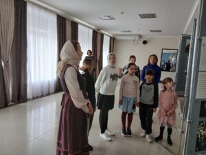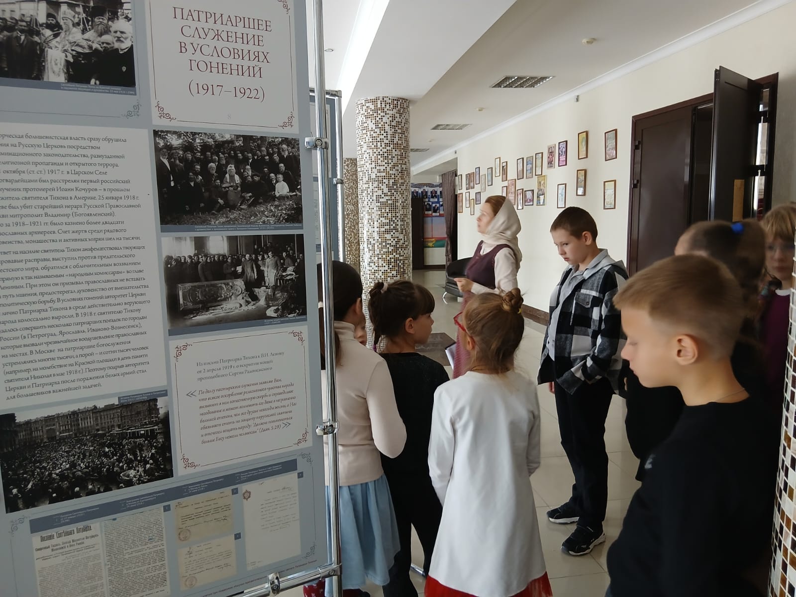 Ребята из учебно-воспитательной группы «Купель» Покровского храма вместе со своими педагогами и мамами посетили выставку, посвящённую жизненному пути и подвигу служения патриарха Тихона.