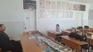 Настоятель храма Святой Троицы п. Рассвет, духовный наставник казачьей СОШ №5 п. Рассвет иерей Александр Виноградов провёл уроки духовности в трёх классах на различные темы.