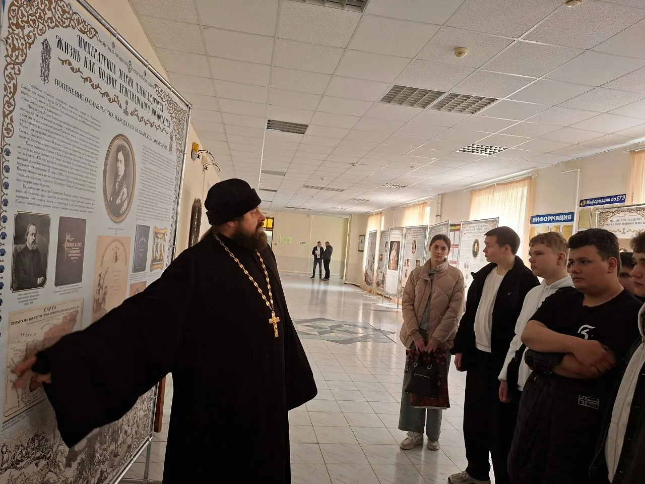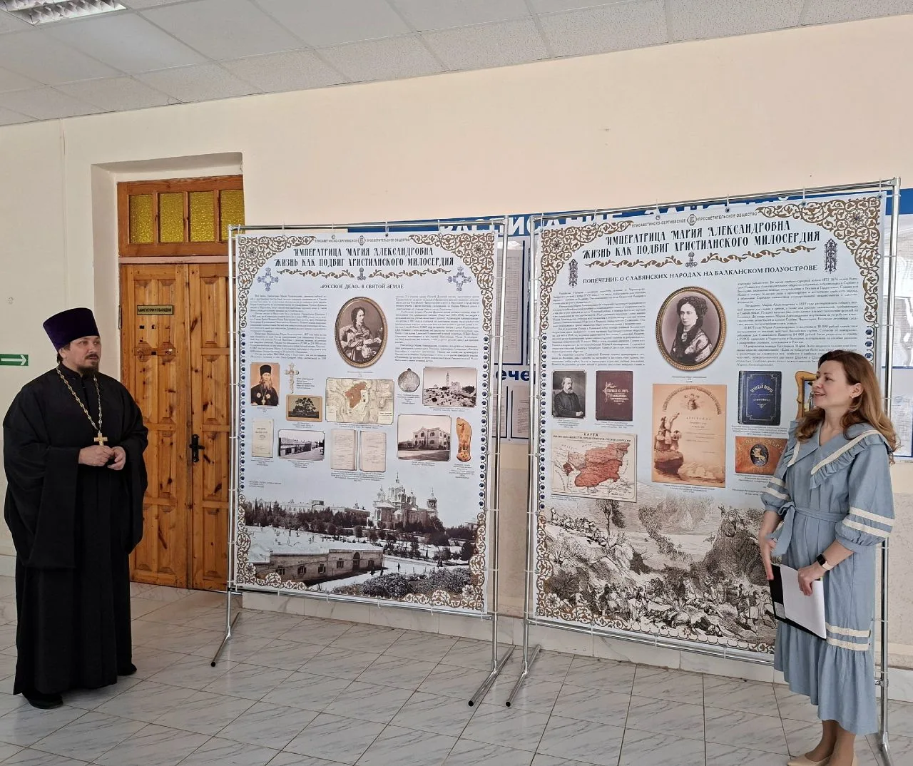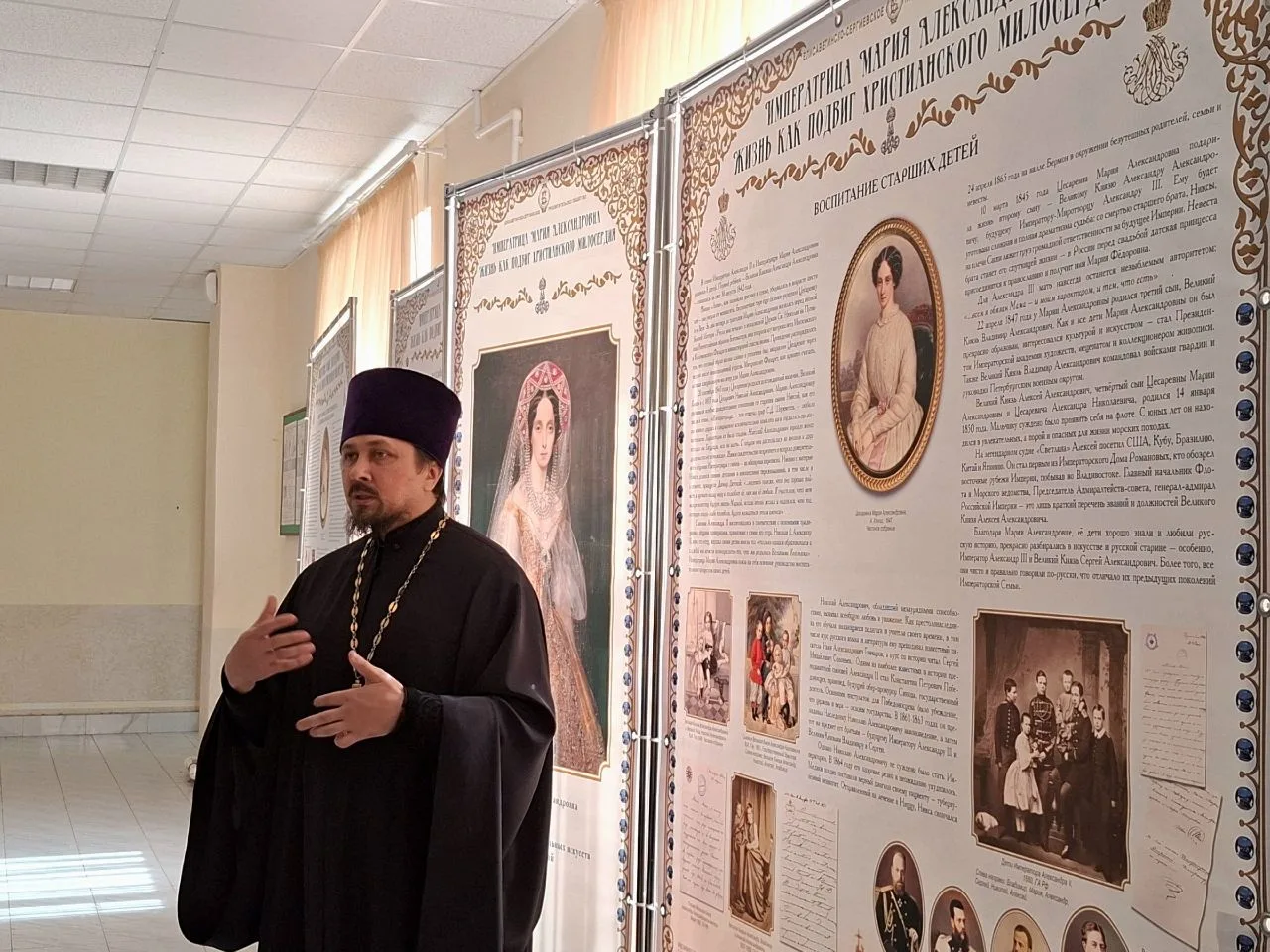 В дни весенних каникул учащиеся 8-9-х классов МБОУ СОШ № 3 им. В.В. Петренко познакомились с жизнью великой благотворительницы XIX века. Ребята посетили передвижную выставку «Императрица Мария Александровна – жизнь как подвиг христианского милосердия», которая рассказывает о выдающемся вкладе супруги императора Александра II в развитие российской культуры и благотворительности. С выставкой школьников познакомили клирики Староминского благочиния. В первый день посещения экскурсию по выставке провёл иерей Николай Слынько, помощник благочинного по образовательной деятельности, настоятель Свято-Казанского храма, во второй день – клирик Покровского храма иерей Дионисий Севрук. Посещение экспозиции позволило учащимся познакомиться с историей российской благотворительности; узнать о развитии женского образования в XIX веке; увидеть уникальные исторические материалы.
