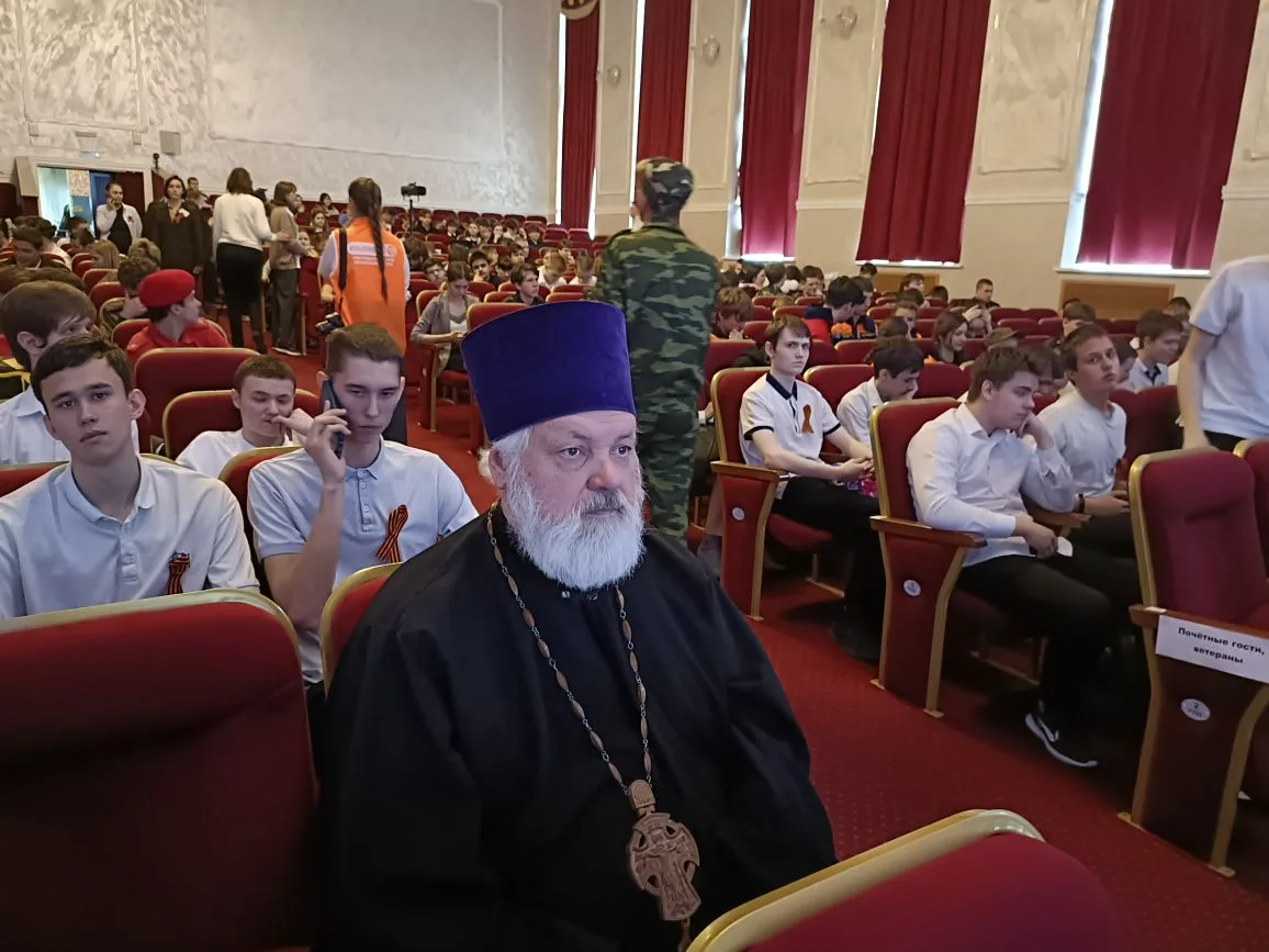 Продолжилось мероприятие в районном Доме культуры, где перед допризывной молодёжью выступили: глава МО Староминский район Кияшко А.В., военный комиссар Оганесов М.А., председатель районного Совета ветеранов Кузьменко Л.Г. и протоиерей Алексий Самойленко.