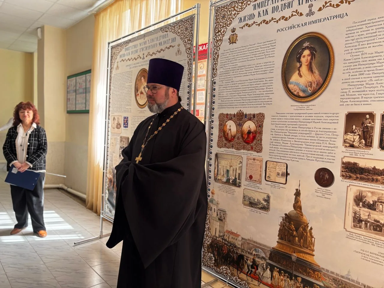 В Светлую седьмицу учащиеся старших классов четырех школ района посетили передвижную выставку «Императрица Мария Александровна-жизнь как подвиг христианского милосердия», предоставленную Марие-Магдалинским монастырём.