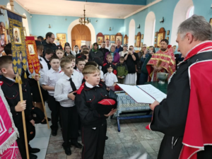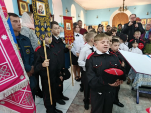Клуб «казачья удаль» создан при районном казачьем обществе и проводит свои занятия по фланировке на базе Дома детского творчества. Клуб «казачья удаль» создан при районном казачьем обществе и проводит свои занятия по фланировке на базе Дома детского творчества. В Светлую пятницу ребята пришли в храм на Литургию и приняли участие в Крестном ходе. Затем состоялось посвящение в казачата. Церемония посвящения собрала немало гостей и участников. Юные воспитанники, их родители, представители казачества и прихожане храма – все вместе стали свидетелями значимого события. Церемония началась с молебного пения и благословения, которое совершил штатный священник храма иерей Дионисий Севрук. Посвящение в казачата для детей – это как присяга для взрослых казаков. Произнося клятву, казачата пообещали, что будут почитать старших, хорошо учиться, свято хранить Православную веру, оберегать и защищать интересы Родины и казачества. В подтверждение своих слов казачата приложились к праздничной иконе, Святому Кресту, Евангелию и казачьему знамени, после чего священник окропил их святой водой.На мероприятии присутствовали почётные гости: атаман Староминского районного казачьего общества Владимир Горб; атаман Староминского станичного казачьего общества Владимир Музалёв; муниципальный руководитель союза казачьей молодёжи Кубани Надежда Гречка.Выступая перед собравшимися, Владимир Горб подчеркнул важность сохранения и передачи казачьих традиций. Он отметил, что посвящение в казачата — это не просто красивый ритуал, а начало пути, который учит ответственности, уважению к истории и готовности служить Отечеству.Владимир Музалёв поздравил новопосвящённых казачат и их родителей, пожелал ребятам успехов в изучении казачьих обычаев, истории и культуры. Он также поблагодарил педагогов и наставников за вклад в воспитание подрастающего поколения.Надежда Гречка она подчеркнула, что участие в мероприятиях, спортивныхсостязаниях, патриотических акциях помогает молодым казачатам расти достойными продолжателями славных традиций. Посвящение в казачата стало важным шагом в деле воспитания подрастающего поколения в духе веры православной, традиций кубанского казачества и укрепления связи между поколениями.