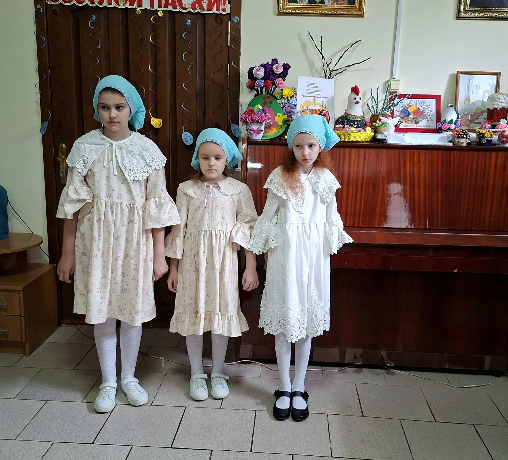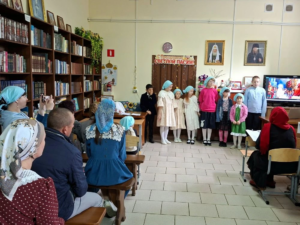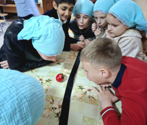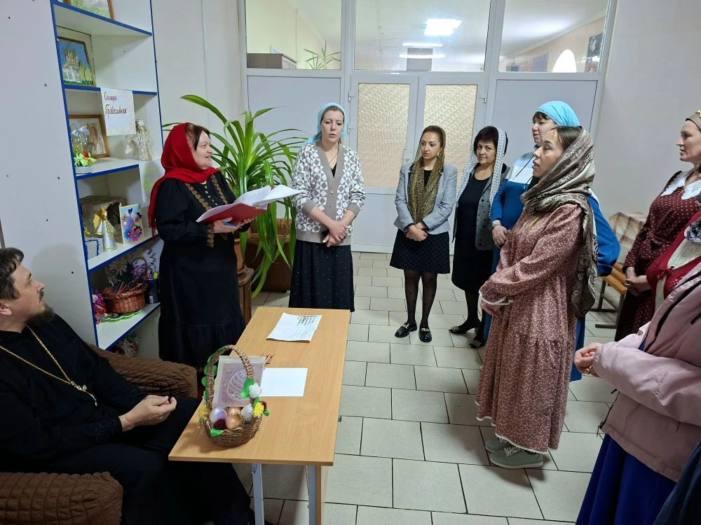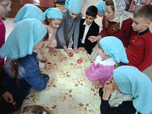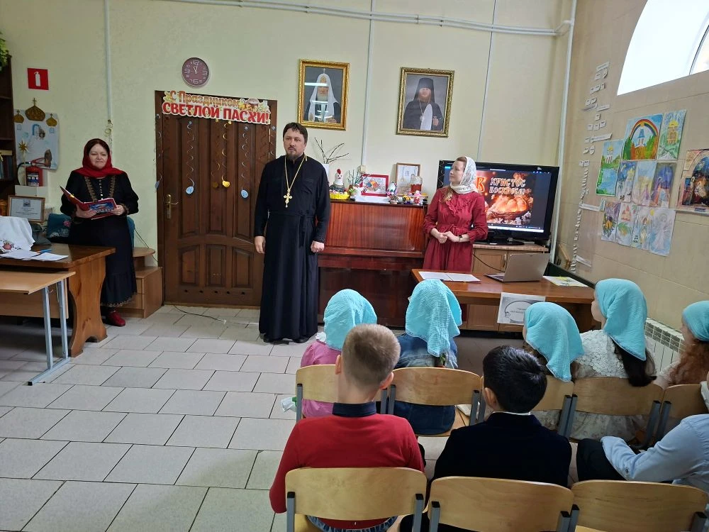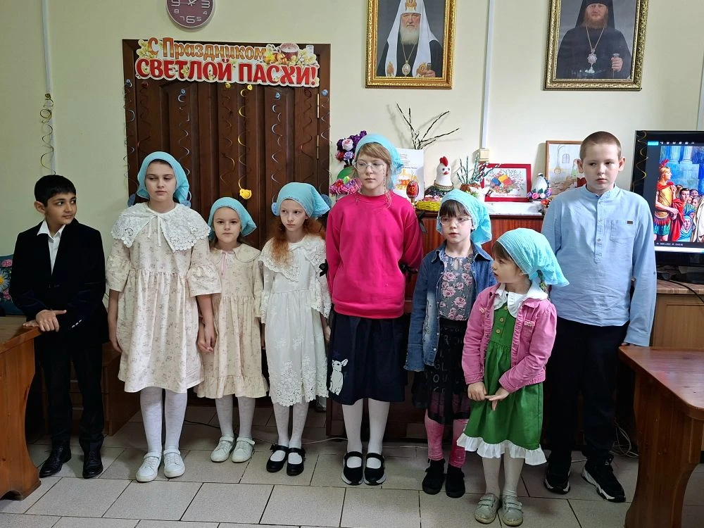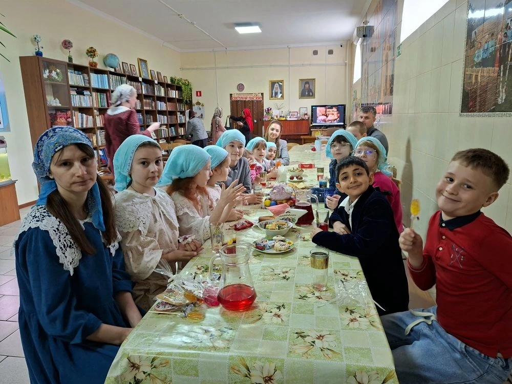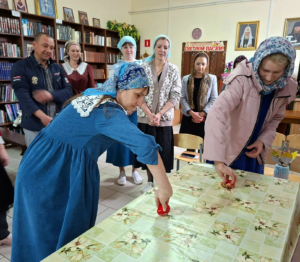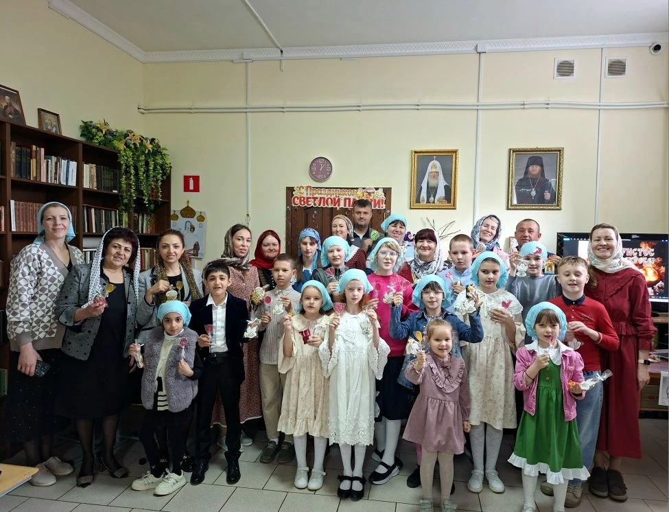 19 апреля, в день Антипасхи, в воскресной учебно-воспитательной группе «Купель» Покровского храма ст. Староминской в библиотеке собрались учащиеся и их родители. Клирик храма иерей Дионисий Севрук благословил ребят на начало мероприятия, поздравил всех с праздником. 19 апреля, в день Антипасхи, в воскресной учебно-воспитательной группе «Купель» Покровского храма ст. Староминской в библиотеке собрались учащиеся и их родители. Клирик храма иерей Дионисий Севрук благословил ребят на начало мероприятия, поздравил всех с праздником. Педагоги группы Калий Ирина Анатольевна и Павленко Ольга Владимировна подготовили интересную программу о Светлом Христовом Воскресении. Дети читали стихи, пели песни о Пасхе, затем разделившись на команды детей и родителей совершили увлекательное путешествие-соревнование по станциям: отвечали на вопросы о православных праздниках, рисовали пасхальные символы, исполняли песни на православные темы, соревновались в катании яиц. На празднике царила тёплая семейная атмосфера, смех и веселье. И взрослые и дети получили радость от общения, совместного творчества. В завершении все участники получили пасхальные прянички, леденцы на палочке, изготовленные специально для этого праздника прихожанкой храма Евгенией. Общение продолжилось за чаетитием.
